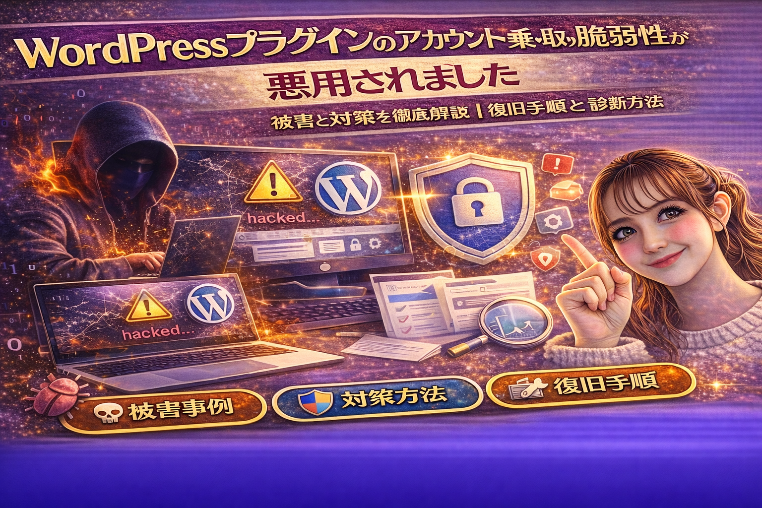 このページでは、2025年最新の被害実態・攻撃手法・具体的な対応策から、信頼できる診断ツールの使い方まで、管理者目線で「今すぐできること」を徹底解説します。最後まで読むことで、「どのプラグインが危険か」「自分のサイトは安全か」「通知が来た時の正しい対処法」まで、すべて分かります。